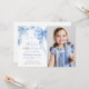 Invitation Winter Blue Bow Snowflake 1er Anniversaire Photo