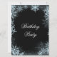 Élégante invitation à la fête d'anniversaire de flocon d'hiver bleu et noir. Cette magnifique invitation à la fête d'anniversaire d'hiver de snowflake est facilement customisée pour votre événement en choisissant simplement le bouton "Customisez-le!" pour commencer à ajouter vos détails d'événement, le style de police, la taille et la couleur de police et le libellé. Veuillez noter que tous les modèles de cartes et d'invitations que vous trouverez sur Zazzle sont des graphiques imprimés sans bijoux, arcs, surélevés, gaufrés, ou des pièces ou pièces ajoutées.