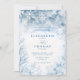 Cette faire-part de mariage de la Forêt des Neiges en chute hivernale incarne l'élégance rustique avec son design d'aquarelle enchanteur. La scène présente une délicate neige blanche tombant doucement sur une forêt sereine, avec des éléments dépoli et des teintes douces et mélangées de bleu et de blanc qui capturent la tranquillité d'un bois d'hiver. Parfait pour les couples qui aiment l'art, les designs uniques et le raffinement moderne, cette invitation est un choix idéal pour les mariages d'hiver en novembre, décembre, janvier ou février.