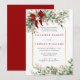 Invitation Winter Greenery Red Bow Bells Rustic Frame Wedding