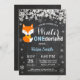 Winter Onederland Fox Boy 1st Birthday Invitation. Flocon de neige blanc. Invitation pour la fête d'anniversaire. Anniversaire de vacances d'hiver. Arrière - plan de tableau de bord. Noir et blanc. Pour plus de personnalisation, cliquez sur le bouton "Customiser" et utilisez notre outil de conception pour modifier ce modèle.