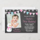 Invitations de fête d'anniversaire Chalkboard hiver onederland. Un design sucré parfait pour une fête d'hiver sur le thème du 1er anniversaire pour votre petite fille. Le design comprend un bonhomme de neige fantaisiste, une bannière pendentif, des flocons de neige et un arrière - plan de tableau noir aux couleurs tendance de rose, bleu et gris. Ajoutez une photo pour rendre cet invitation spécial. Graphiques par www.jwillustrations.com