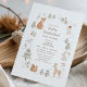 This Winter Wonderland baby shower invitation features hand-painted woodland animals, soft winter greenery, and delicate snowflake details.