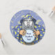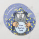 Vieux sorcier avec cape bleue et boule de cristal magique. Utilisez la photo du visage pour customiser. Texte personnalisé.