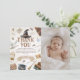 Share your gratitude with a touch of magic! This Witches and Wizards photo thank you card features enchanting watercolor illustrations of spell books, wands, potions, and owls—perfectly paired with your little one’s photo. Ideal for Harry Potter–inspired first birthdays or any whimsical celebration full of wonder and imagination.