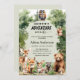 Celebrate your little one's upcoming arrival with this charming woodland-themed baby shower invitation! Featuring a heartwarming forest scene with adorable baby animals—deer, fox, raccoon, bear, and more—this design is perfect for a rustic or adventure-inspired shower. The phrase “Adventure Awaits” adds a whimsical touch, making it ideal for nature-loving parents or outdoor-themed events. Easily personalize the details to create a memorable invitation that sets the tone for a magical gathering.