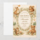 This charming woodland baby shower design features adorable forest animals gathered around a delicate vintage frame, creating a warm storybook scene perfect for celebrating a little one on the way. Sweet illustrations of a bunny, raccoon, squirrel, and owl are surrounded by tiny mushrooms, pinecones, wildflowers, and soft woodland greenery. The warm neutral palette and gentle watercolor style give the design a cozy, nostalgic nursery feel inspired by classic children’s book illustrations. Perfect for nature-themed baby showers, woodland celebrations, or rustic forest gatherings.