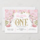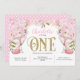 Woodland, Pink Floral, Fox, Girl, 1er anniversaire Invitation