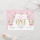 Invitation Woodland, Pink Floral, Fox, Girl, 1er anniversaire