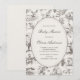 The invitation features a soothing neutral, ivory white background, creating a warm and inviting canvas that resonates with the natural beauty of the woods. Adorning the background is a whimsical allover print, featuring delicate pencil sketches of adorable baby animals and botanical elements. These charming illustrations evoke the serene beauty of a woodland adventure, adding a touch of whimsy and delight to your celebration.