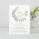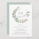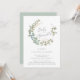 Cette élégante invitation à saupoudrer de baby shower neutre pour les deux sexes présente une couronne botanique verte feutrée, simple, avec des oeuvres d'art en faux or en forme de fleur et de feuilles. La calligraphie élégante est également présente, de même que le texte gris moderne.