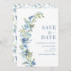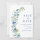 Invitation Wreath Floral Bleu Whimsical Enregistrer La Date