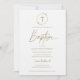 Invitation Wreath Laurel moderne Croix dorée d'or Baptême