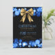 Invitation Xmas Holiday Dinner Party Winter Gold Bow Navy
