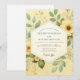 This design features a soft, ethereal arrangement of yellow blossoms and delicate greenery. A romantic and whimsical mood is evoked by the painterly watercolor style and muted color palette.