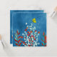 A vibrant, textured digital illustration featuring a whimsical nature scene set against a rich, textured cerulean blue background. The style is modern and graphic, with a heavy emphasis on color contrast and layered textures. A single, bright yellow butterfly is positioned in the upper right quadrant. It is illustrated with a simple black outline and subtle red speckles on its wings, appearing as if it is fluttering toward the plants below.