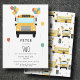A cute hand drawn illustration of a yellow school buses, traffic lights and balloons. A school bus party theme for boys and girls who love school buses, trucks, school or transportation. An ideal children yellow school bus party theme, simply customize and make it your own!