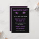 Cette invitation de fête hantante sera parfaite pour votre bash d'Halloween ! Cette carte présente des yeux de chat violet sur le devant, l'arrière - plan est noir pour le devant et l'arrière de l'invitation est une texture violet foncé. Le texte est entièrement personnalisable pour que vous puissiez ajouter les détails de votre fête ! Préparons-nous à la meilleure fête de l'année !