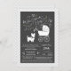 Inclure le grand frère ou la soeur à fourrure bébé dans la fête avec cette adorable conception de douche bébé Yorkshire Terrier chien! Parfait pour un amoureux du chiot avec un bébé en route. Le Yorkshire Terrier se trouve à côté d'un adorable chariot vintage. Le fond gris damier est parfait pour une douche neutre ou mixte !