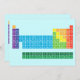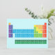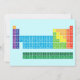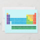 Invitation présentant le tableau périodique des éléments, avec chaque groupe d'éléments marqué de couleurs arc-en-ciel.