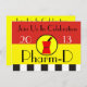 Invitations élégantes d'obtention du diplôme de pharmacien rouge, arrière - plan blanc et jaune noir avec le pilon assorti et la conception de mortier. "Joignez-nous dans la célébration", 2013 Pharm-D, rétro lettrage noir parisien moderne. Affranchissement assorti disponible dans notre magasin.