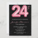 Invitations à 24e anniversaire Pink Balloon Glam Black