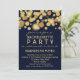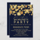 Cet élégant design moderne présente un design bokeh en or et un arrière - plan bleu marine. Bien que ce invitation particulier soit fait pour des soirées bachelorettes, il est également idéal pour les Fiançailles, les anniversaires et les fêtes du Nouvel An. Personnalisez cette invitation avec les détails de votre fête. Le dos offre aussi beaucoup de place pour l'information.