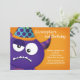 Commencez votre fête anniversaire de enfant tout de suite avec notre invitation à l'anniversaire de bash de monstre brillant, audacieux et mignon avec le plus beau petit monstre en violet sur un arrière - plan orange. Mignonne pour une première fête d'anniversaire pour filles ou pour les premiers garçons. Visitez notre boutique pour voir d'autres invitations à la fête d'anniversaire de monstre mignons et des notes de remerciements assorties, des autocollants et des timbres-poste. © Corazón Dulce