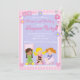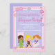 Commencez votre fête d'anniversaire en sommeil en vous offrant notre mignonne invitation à l'anniversaire en pyjama avec les plus jolies petites filles tenant des coussins et un ours en peluche. Notre invitation à la fête d'anniversaire en pyjama est posée sur un arrière - plan violet avec un bandeau à rayures roses, des fleurs roses, du rouge à lèvres à fleurs violettes et du vernis à ongles. Mignonne pour une fête d'anniversaire entre filles. Visitez notre boutique pour voir d'autres invitations modernes et élégantes à la fête d'anniversaire de la nuit et des notes de remerciements assorties, des autocollants et des timbres-poste. © Design Babystar