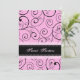 Personnalisé 16e anniversaire invitations à la fête dans l'élégant motif tourbillon noir et rose. Ajoutez votre nom et les détails de votre fête pour une invitation unique et élégante à 16 ans.