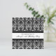 Personnalisé 18e anniversaire invitations à la fête dans un style classique élégant et chic, noir et blanc damas floral classique. Ajoutez votre nom et vos coordonnées pour une invitation unique et élégante à la fête du 18e anniversaire.