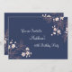 Custom 80th Birthday invitations dans l'élégant bleu marine foncé, rose pêche et blanc style japonais fleurit des fleurs vintages motif. Ajoutez votre nom et vos coordonnées pour une invitation unique et élégante à la fête d'anniversaire.
