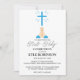 Célébrez la journée spéciale de votre enfant avec ces premières invitations de communion élégantes et sophistiquées. Dotés d'un bel arrière - plan bleu marine, d'un design croisé délicat et d'une touche de feuille d'or, ces invitations sont parfaites pour une célébration moderne et élégante. Le design est personnalisable pour correspondre au thème et à la palette de couleurs de votre événement.