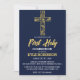 Célébrez la journée spéciale de votre enfant avec ces premières invitations de communion élégantes et sophistiquées. Dotés d'un bel arrière - plan bleu marine, d'un design croisé délicat et d'une touche de feuille d'or, ces invitations sont parfaites pour une célébration moderne et élégante. Le design est personnalisable pour correspondre au thème et à la palette de couleurs de votre événement.
