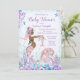 Les invitations à la douche de bébé de sirène avec adorable mère africaine-américaine ethnique de sirène tenir un mignon maillot de bébé sur un beau violet et bleu turquoise sous l'arrière - plan de la mer. Cette invitation au baby shower sirène est facilement customisée pour votre événement en ajoutant simplement vos coordonnées.