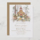Belle forêt boisée avec pins, église rustique, tans neutres, feuillage vert tendre, jaune moutarde et bleu pâle et fleurs séchées sur un arrière - plan faux, gris très clair. Le dos est un arrière - plan brunâtre neutre. Parfait pour un mariage avec une sensation de montagne nature. Beaucoup d'objets correspondants sur celui !