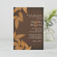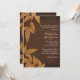Cette belle faire-part de mariage présente un vieil aspect vintage de la texture de papier avec des images de feuilles d'automne orange sur un arrière - plan chocolat foncé. Idéal pour toute mariée à la recherche d'un look vintage classique pour son Mariage de automne