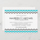 Invitations de mariage modernes en chevron. Bleu tropical aqua, gris et blanc pour les mariages décontractés de plage ou de destination. Un motif d'impression zig-zag branché avec une typographie sans-serif minimaliste et audacieuse peut être customisé tel quel, ou déplacer des objets pour créer de belles invitations de mariage bricolées. Consultez-le sur toutes les options papier abordables. Visitez notre magasin pour voir d'autres trousses de mariages uniques dans d'autres tailles, couleurs et styles.