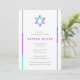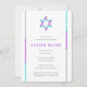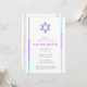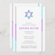 Invitations Bat mitzvah simples et modernes avec design Star of David aux accents violet, turquoise et argent. Personnalisez en ligne avec vos détails Mitzvah.