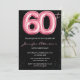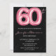 Invitations de 60e anniversaire noir Balloon Glam Parties scintillant rose étincelle