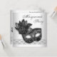 Élégantes invitations à des fêtes de mascarade noire. Elégant masque noir et argent blanc mascarade invitation de fête. Belle invitation à la mascarade noir et blanc fonctionne bien pour une fête mascarade sweet sixteen, fête mascarade d'anniversaire, soirée mascarade de quinceanera, fête mascarade de vacances, ou toute autre fête à thème noir et blanc. Simple à customiser pour votre fête ou événement ! Ajoutez vos détails à l'avant et/ou à l'arrière en cliquant simplement sur le bouton orange "Customisez-le !" pour commencer à ajouter vos détails d'événement, le style de police, la taille et la couleur de police et le libellé. Veuillez noter que tous les modèles d'invitation que vous trouverez sur Zazzle sont des graphiques imprimés sur papier plat stock sans bijoux, arcs, surélevés, gaufrés, ou pièces ou pièces ajoutées.