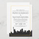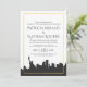 Un faire-part de mariage a conçu en fonction New York le mariage classique comportant plusieurs éléments et gisements personnalisables des textes. Ils comportent une silhouette foncée d'horizon de ville et un cadre de feuille d'or de faux. Ayez l'amusement lui faire vos propres.