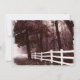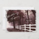 Invitations blanches de mariage de promenade de forêt de barrière avec une scène affligée de nature des arbres et feuille avec une barrière blanche. Ces invitations paisibles de mariage ont une tonalité pourpre à eux. La même conception affligée par cru est sur le dos de l'invitation. Ce seraient grands pour des mariages de chute et d'automne. Ajoutez juste votre propre faire-part de mariage exprimant au modèle.