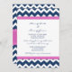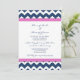 Invitations de partie de fiançailles dans le bleu marine foncé élégant, l'amusement rose et blanc lumineux fuchsia et le motif de zigzags moderne de chevron. Entièrement personnalisable avec vos détails de partie de fiançailles. En outre disponible dans un éventail d'assortir des produits de mariage.