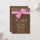 Une invitation rose et brune élégante de baby shower. Comporter le pois et un graphique rose d'arc. Perfectionnez pour un baby shower de petite fille. À la mode et mignon. Personnalisez facilement pour votre partie ! Les conceptions sont les illustrations/dessins imprimés par appartement - RUBAN NON RÉEL.