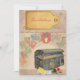 Des invitations à des mariages à thème de style Vintage avec un coffre et un arrière - plan de timbre. Facilement personnalisable pour pouvoir ajouter tous vos détails.