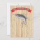 Invitations de Rustic Fish Fry Party faites dans un style poster avec une illustration vintage d'un poisson sautant, de la typographie amusante et des bannières sur un arrière - plan en planches de bois. Illustration tirée à la main par McBooboo.
