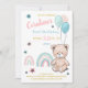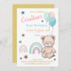 Les invitations pour les premiers anniversaires sont décorées d'un joli ours en peluche, de ballons et d'arc-en-ciel.