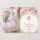 Personnalisez facilement et rapidement cette invitation fantaisiste rose florale avec le nom de votre enfant, l'âge et les détails de votre fête, il vous suffit d'appuyer sur le bouton customiser pour ajouter une photo et réorganiser et formater le style et l'emplacement du texte.c) The Happy Cat Studio