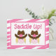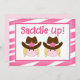 Invitations à la fête d'anniversaire à thème de Cowboy Great pour les filles jumelles. Le design a le mot Saddle Up. Utilisez notre modèle facile à customiser avec vos informations.